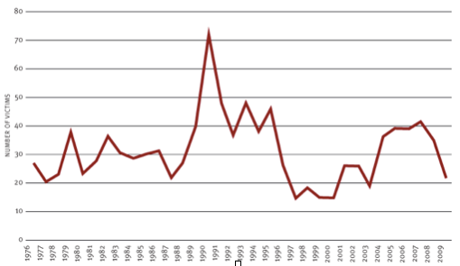 Over the 39-month post-intervention period there was a statistically significant 44% reduction in gun assault incidents.