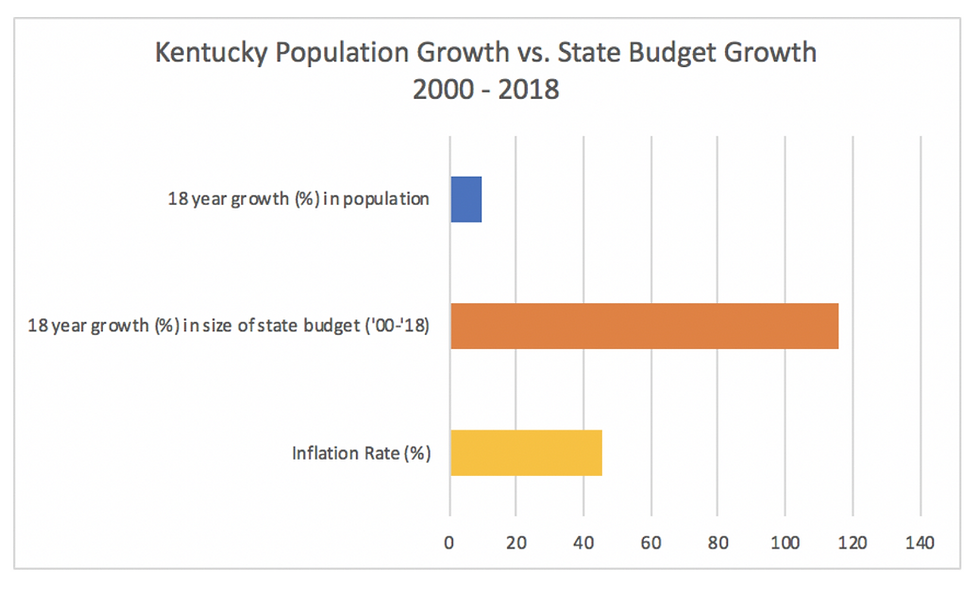 Kentucky State Budget Grew 12 Times More Than Population Growth From 2000 to 2018